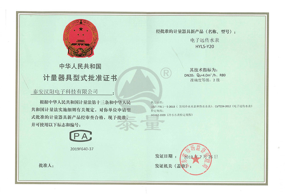 “泰量”水電表為泰安漢陽電子科..